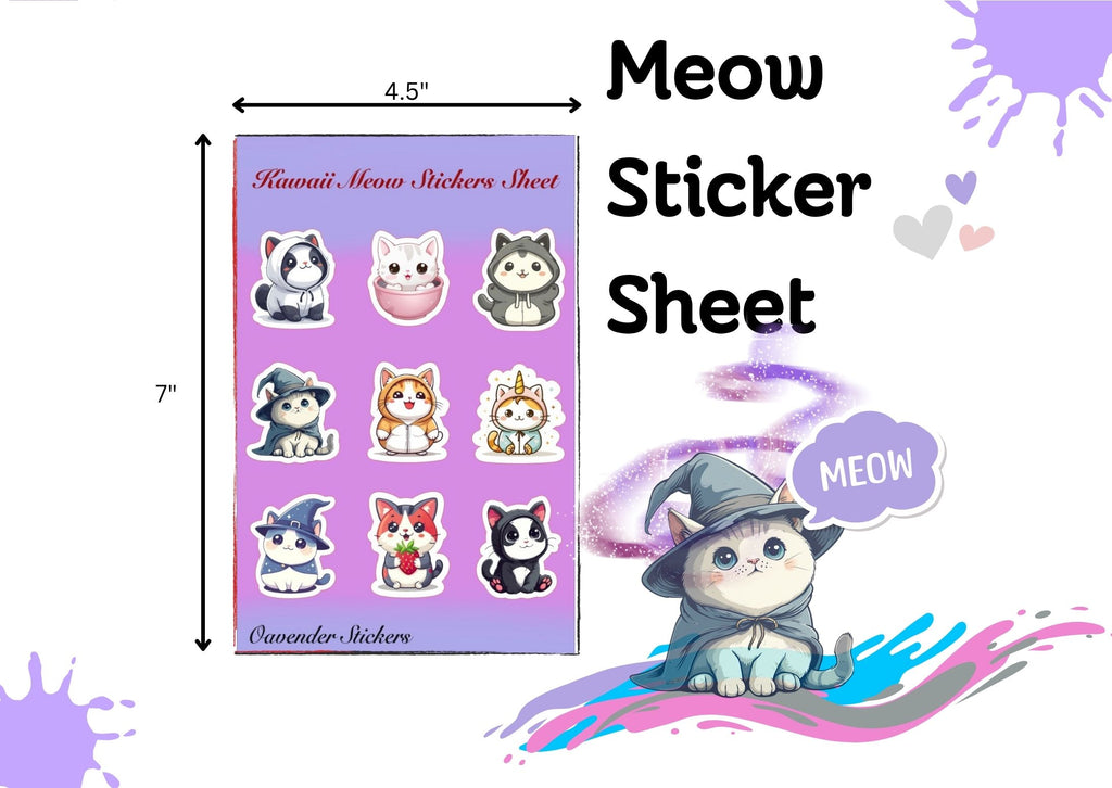 About: Vinyl sticker is perfect for smooth flat surface. Just peel and stick. This sticker sheet contains Nine different Cat characters.