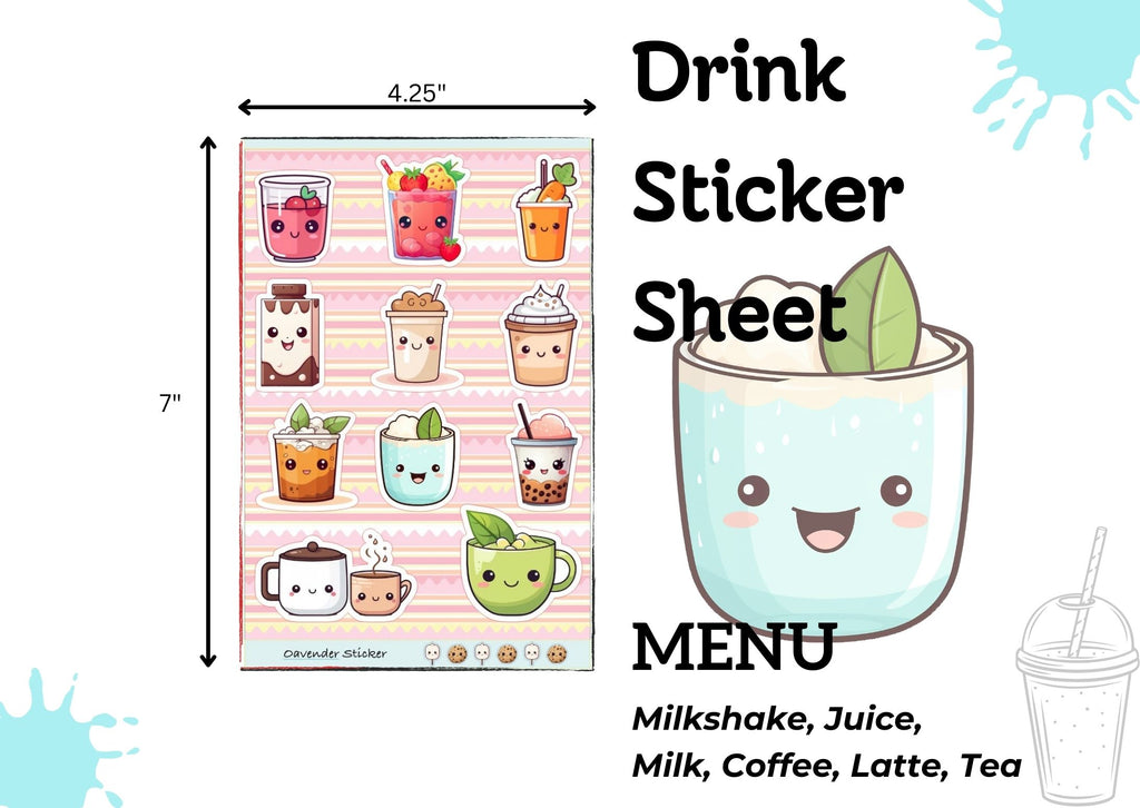 About: Vinyl sticker is perfect for smooth flat surface. Just peel and stick. This sticker sheet contains Eleven different drinks.